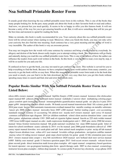 Read Online Nsa Softball Printable Roster Form Doc Library Genesis